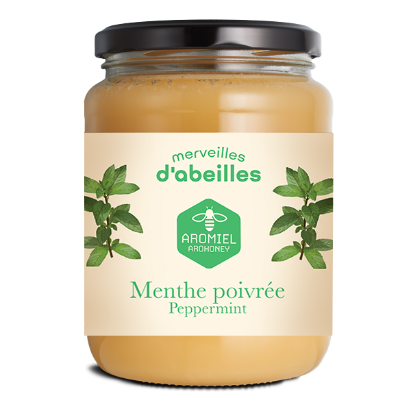 Nous vous offrons un aromiel de grande qualité, combinant notre Miel d’été non filtré ni pasteurisé et une huile essentielle de Menthe Poivrée biologique de l’entreprise québécoise Divine Essence.